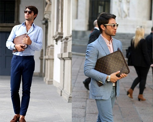 Nếu bạn là một chàng trai công sở nhưng vẫn yêu thích phong cách trẻ trung cùng một chút trầm mặc không quá nổi loạn thì một bộ đồ vest thời trang kết hợp cùng ví da nam dáng dài sẽ là sự lựa chọn tuyệt vời dành cho bạn. Hay một chiếc sơ mi trắng cùng bộ đồ Âu màu sắc theo sở thích kết hợp cùng một chiếc ví da cầm tay đơn giản sẽ khiến bạn trở nên trẻ trung, năng động nhưng vẫn vô cùng sang trọng. Đây cũng là một trong những cách phối đồ đang được ưa chuộng trong thời gian gần đây.