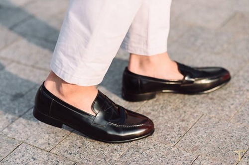 - Giày Penny Loafers: thường được làm bằng chất liệu nhung hoặc da. Phần mũi thuôn nhọn tương tự như giày Derby, gót giày cao 2-3cm, tạo cho người mang một cảm giác thoải mái và lịch sự. Giày có thể phối với quần tây, áo sơ-mi nhẹ nhàng, blazer hoặc một bộ suit.