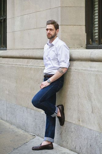 Quần jeans là món đồ vô cùng thân thuộc và luôn có mặt trong tủ đồ của mọi chàng trai. Đây được xem là item không bao giờ lỗi mốt. Bởi sự tiện dụng và dễ phối đồ của chúng. Đặc biệt, sự kết hợp giữa quần jeans với giày lười hoặc giày thể thao luôn được phái mạnh ưa chuộng và lựa chọn trong cuộc sống hằng ngày. Từ đi làm cho đến đi chơi, đi du lịch, bộ đôi quần jeans và giày lười luôn sát cánh cùng quý ông một cách vô cùng ăn ý. Đặc biệt, một chiếc áo phông basic hoặc áo sơ mi thô đũi cổ trụ sẽ làm set đồ của cánh mày râu trở nên năng động và thời thượng hơn bao giờ hết.