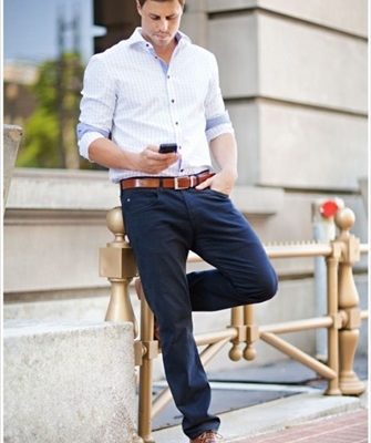 Bạn cũng có thể thử kết hợp sơ mi với quần jean hoặc quần kaki sáng màu. Khi đó những chiếc dây lưng nam hàng hiệu được làm từ da bò nâu là sự lựa chọn phù hợp. Sự kết hợp tạo nên chút lịch lãm đậm chất “soái ca” nơi công sở.